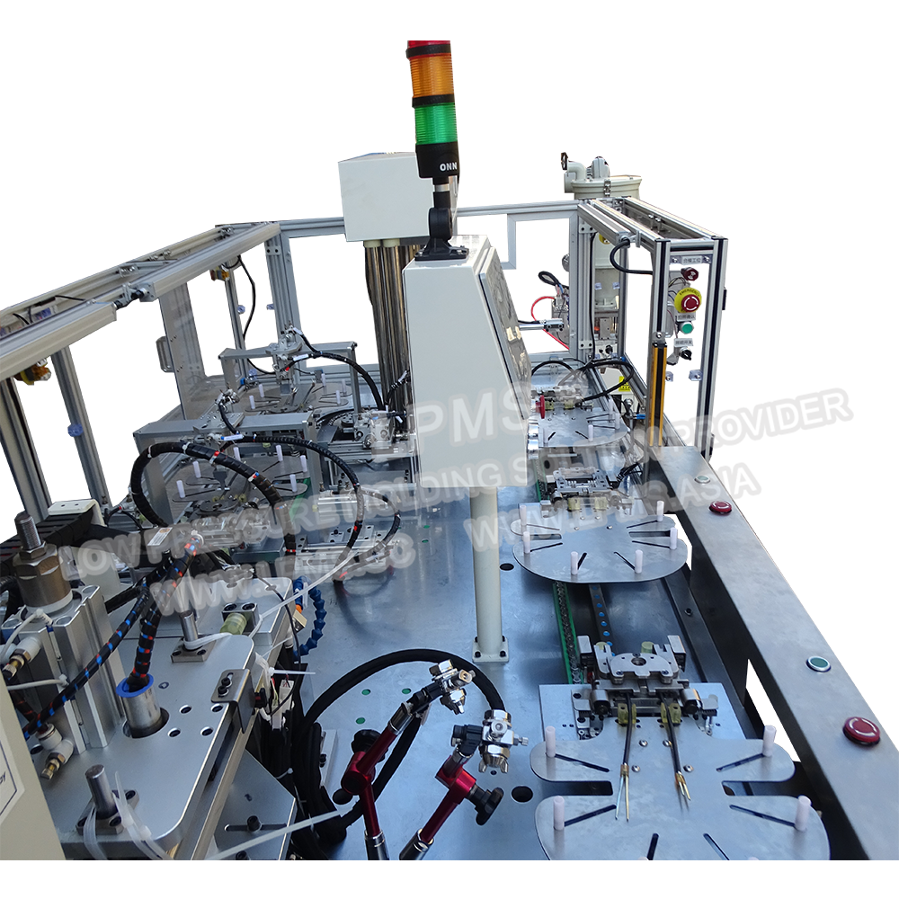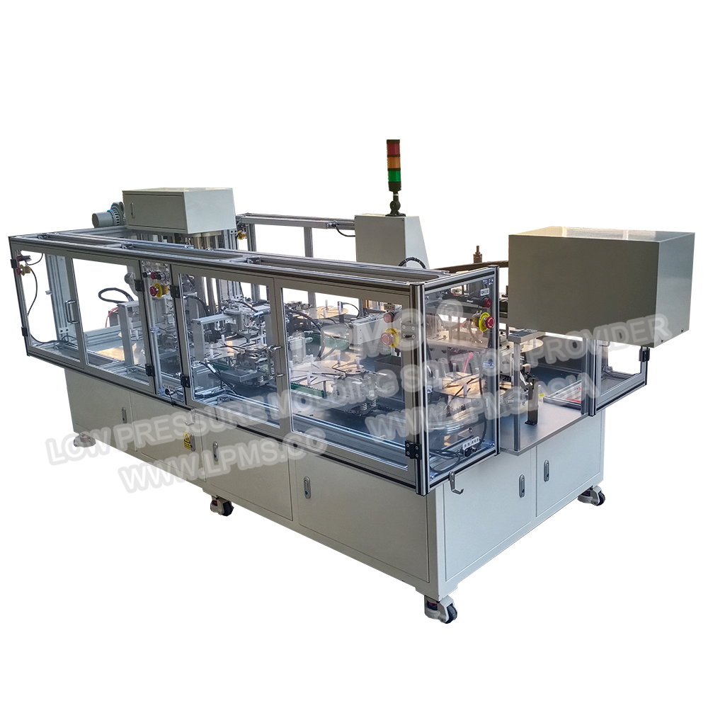 l 該(gāi)環形(xíng)軌(guǐ)道式自動(dòng)低壓注塑機,環形軌(guǐ)道上均布8個工位(wèi)(工位(wèi)數量可根據產品工序增加或減少),2個工位放線擺線,其他工位自(zì)動工作(CCD檢測、合上模(mó),低壓注膠,開線(xiàn)夾,開上模,頂出(chū)取水口,取成品).