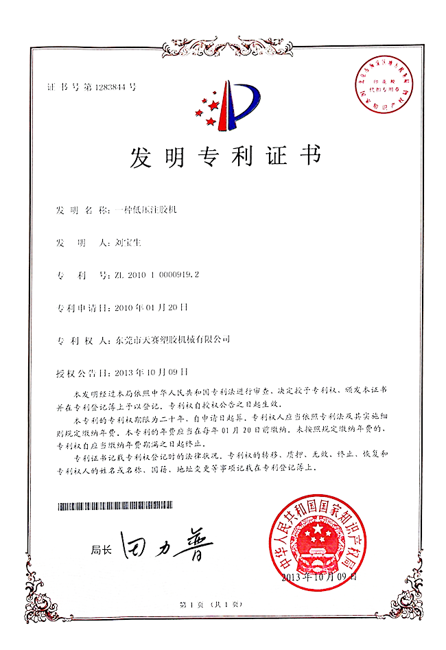 一體式低壓注膠機(600型,2200型) 專案號:2010100009192