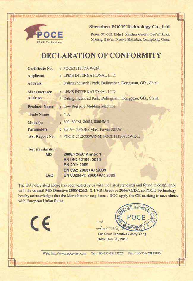 頂式低(dī)壓注膠機CE認證